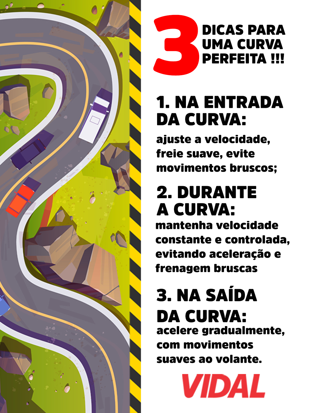 1 - Ajuste a velocidade na entrada da curva, freando suavemente e evitando movimentos bruscos.
