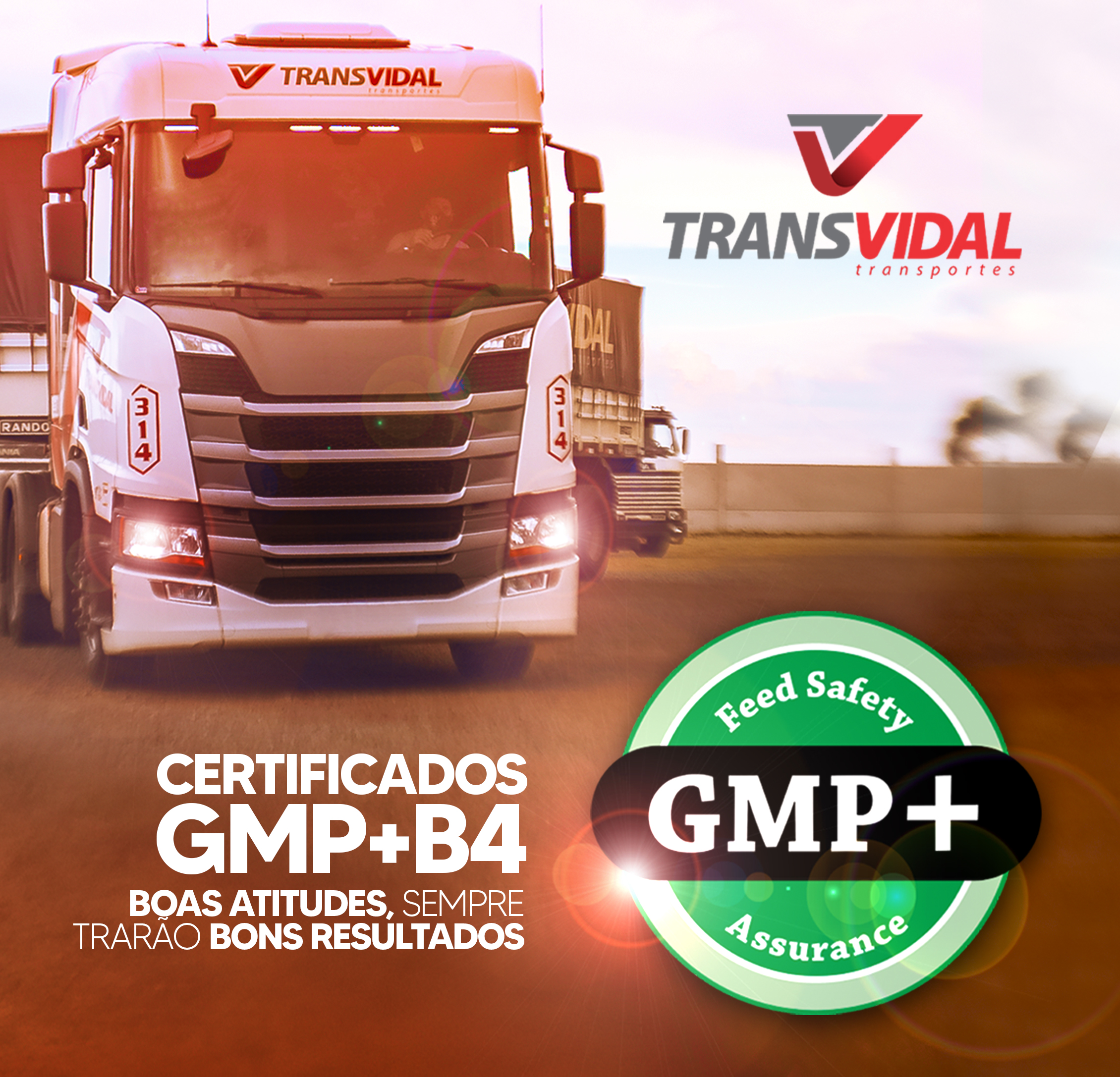 Com a certificação GMP+B4, a Empresa passa a figurar entre as poucas certificadas em operação no PaÃs, estando plenamente comprometida com a integridade dos produtos transportados. Apesar de não ser uma certificação obrigatória no Brasil, a TransVidal optou pela mesma para validar a qualidade dos serviços já prestados e abrir a possibilidade de acessar novos mercados.