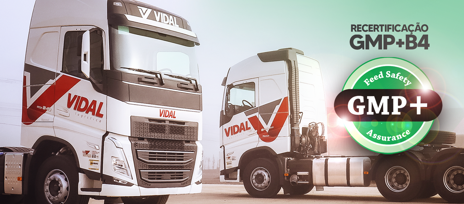 A Vidal Logística foi recertificada com a GMP+B4, que é uma certificação com validade internacional emitida pelo órgão de auditoria externo Control Union. Essa certificação garante que a empresa adota medidas de trabalho e segurança que cumprem requisitos de boas práticas de transporte de ingredientes para alimentação animal durante todo o processo de carga, transporte e descarga.